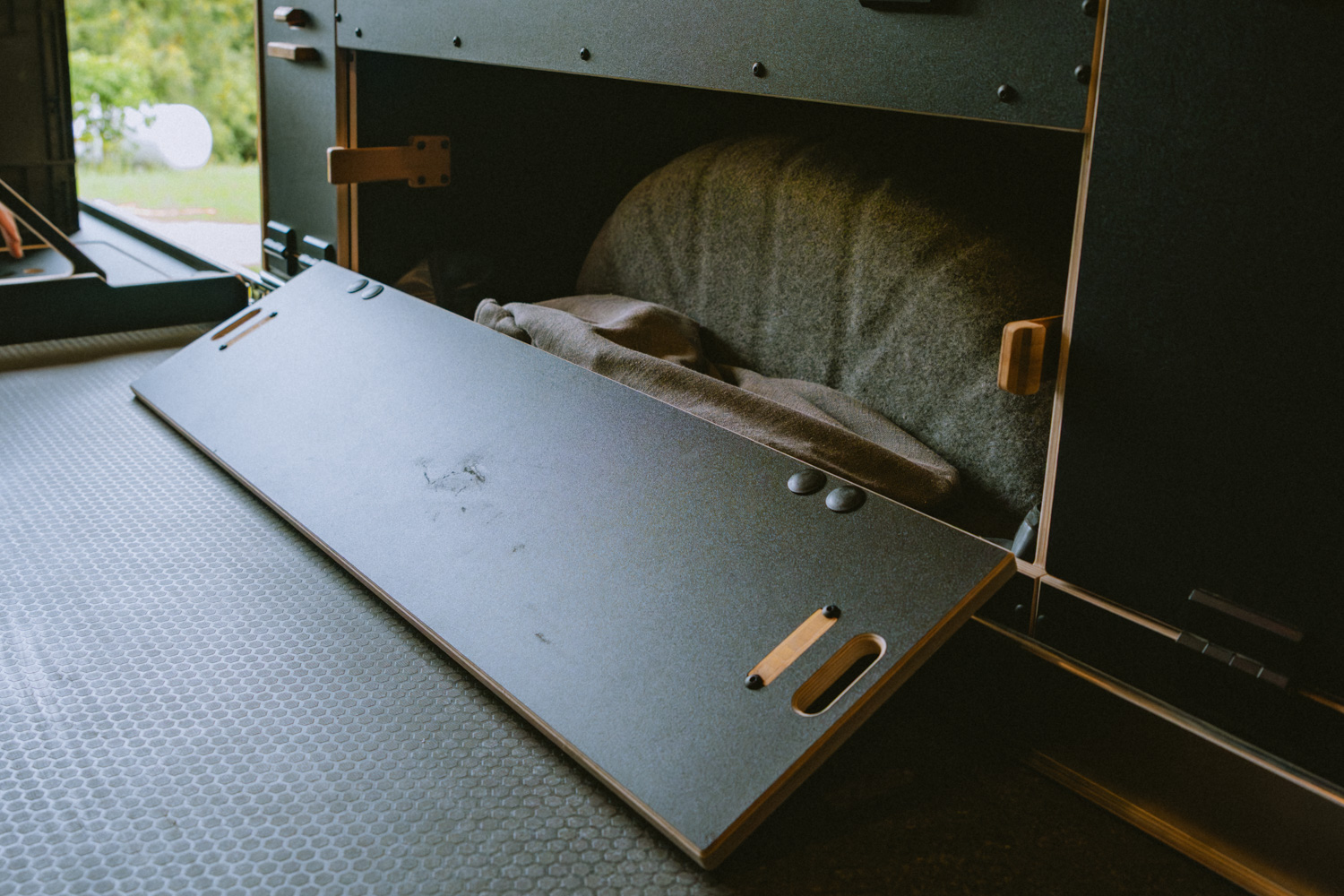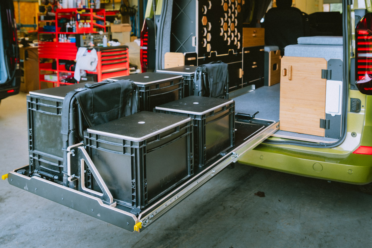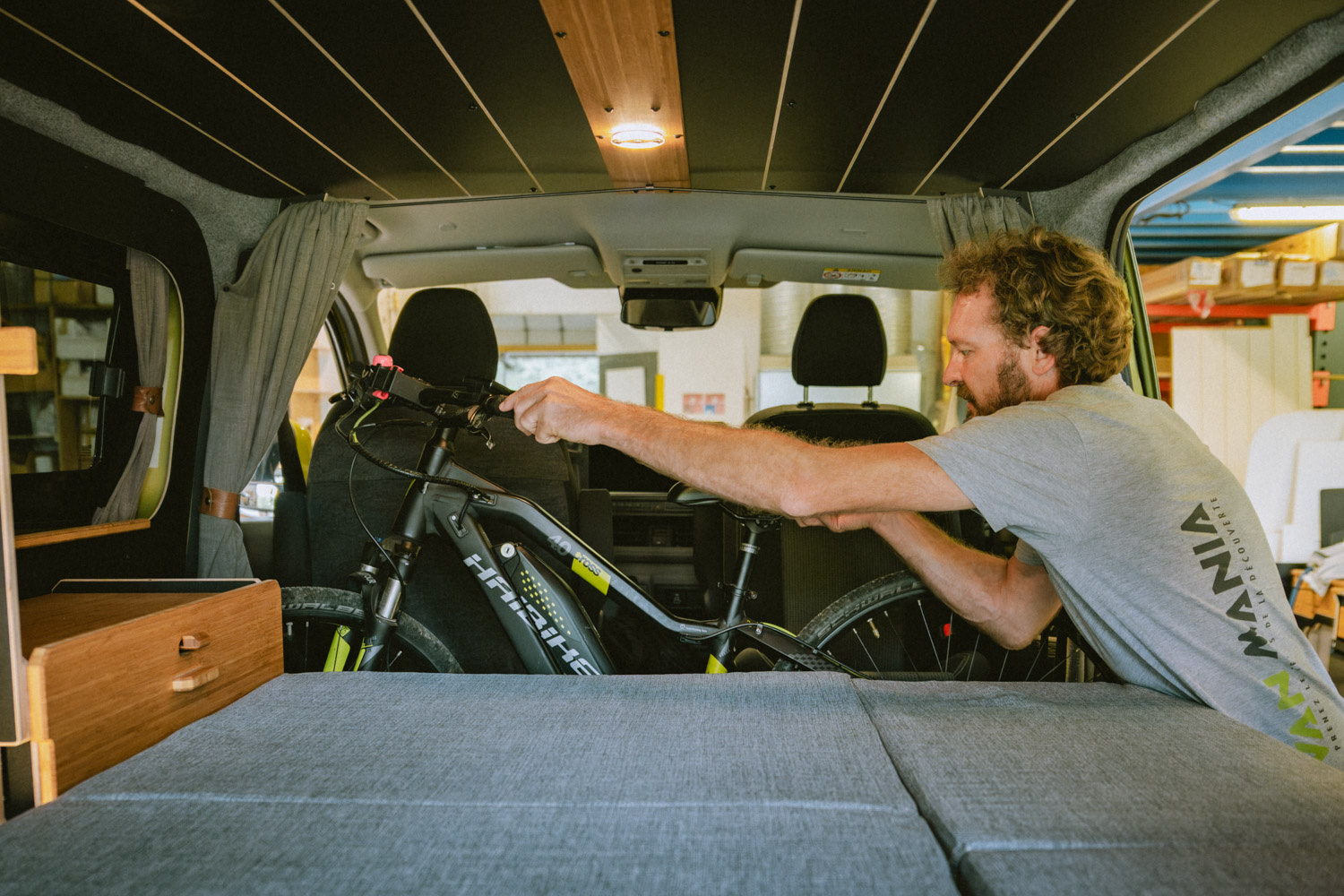 Pensé pour celles et ceux qui voyagent avec du matériel sportif ou encombrant, le kit OUEST vise l’efficacité avec un maximum de modularité en toute simplicité. Contrairement aux implantations plus classiques, ce kit se distingue par sa grande soute centrale, sur toute la longueur du véhicule. Capable d’accueillir jusqu’à deux vélos ou même une moto gros cube, votre van se transforme en camp de base mobile pour vos aventures. Avec sa plate-forme coulissante, organiser son équipement devient un jeu d’enfant et vous n’aurez plus à vous demander où ranger votre matériel encombrant.