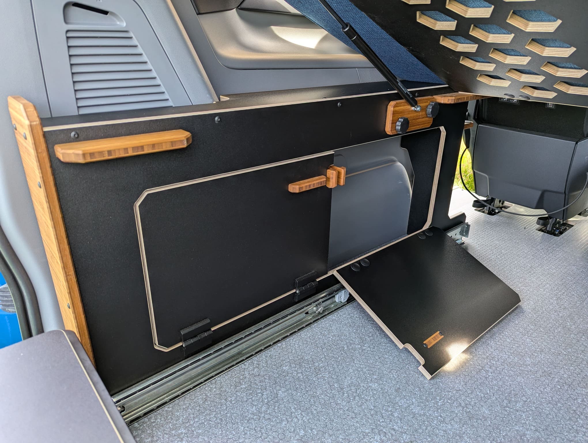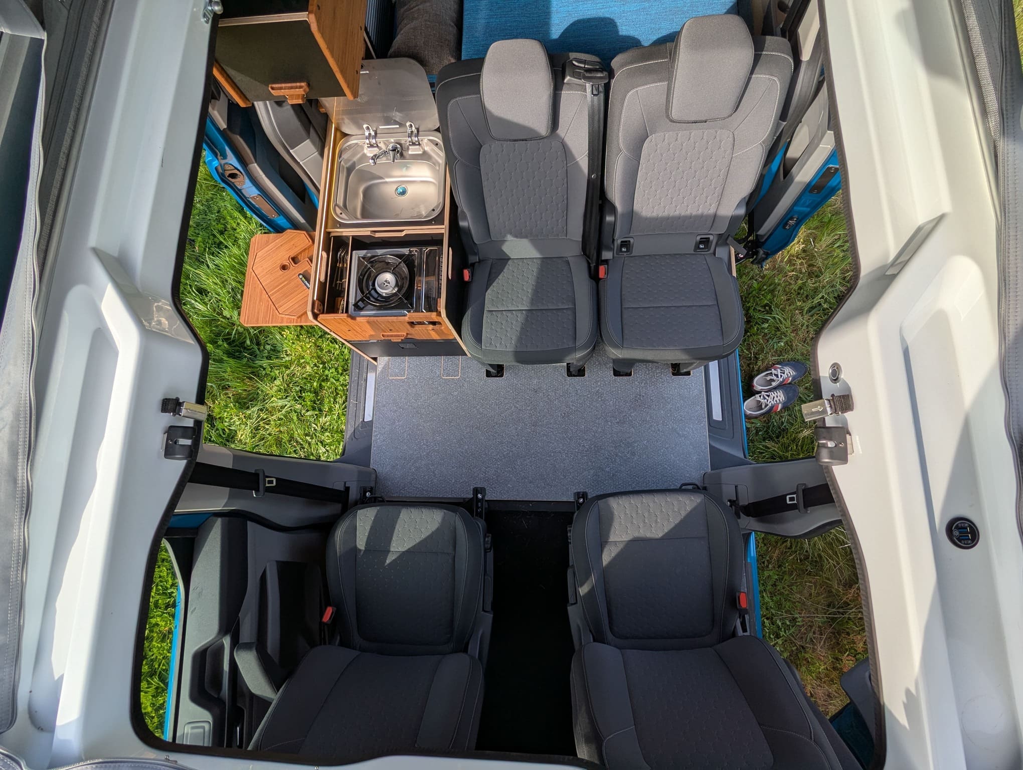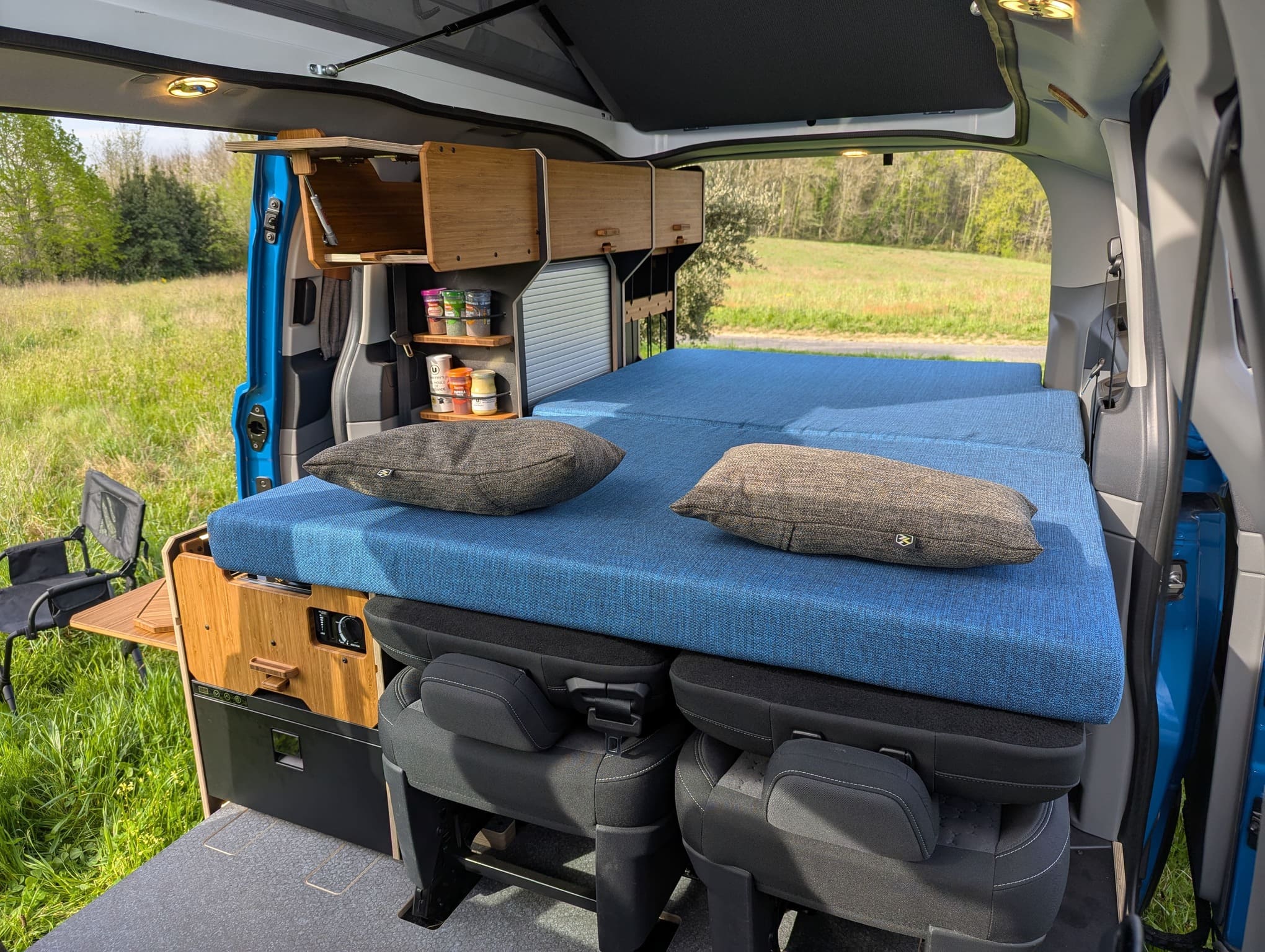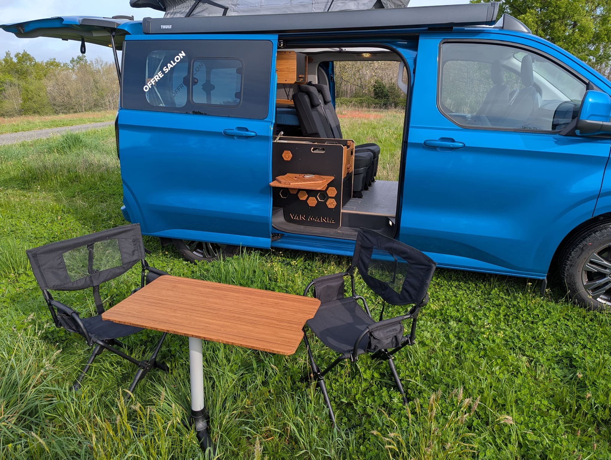 Il permet d’avoir un coin cuisine accessible de l’intérieur comme de l’extérieur, un plus non négligeable pour les amoureux du plein air. Il a su convaincre au fil des années de nombreux adeptes du voyage en van. Il est prévu pour idéalement voyager en famille ou entre amis avec ces 4 ou 5 places route.