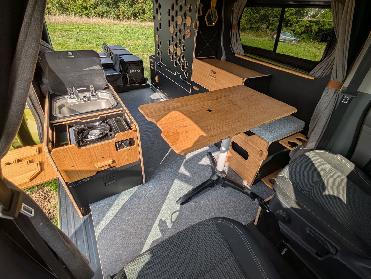 La plaque de sol en contreplaquer marine bouleau de 15mm et fourni avec tout les kits d’aménagement. Option uniquement pour la Box